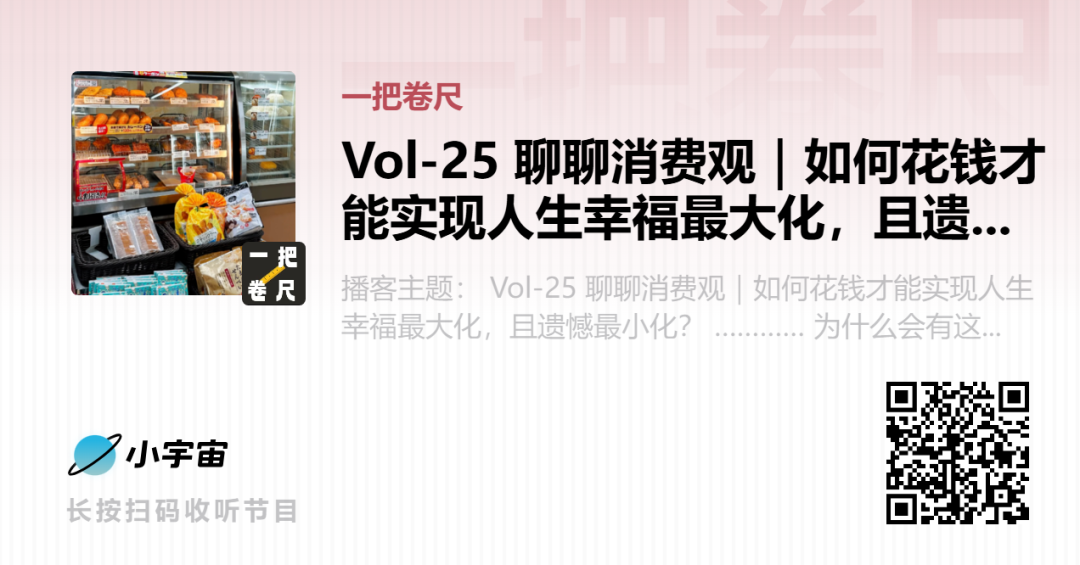 相关播客:《Vol-25 聊聊消费观|如何花钱才能实现人生幸福最大化,且遗憾最小化?》