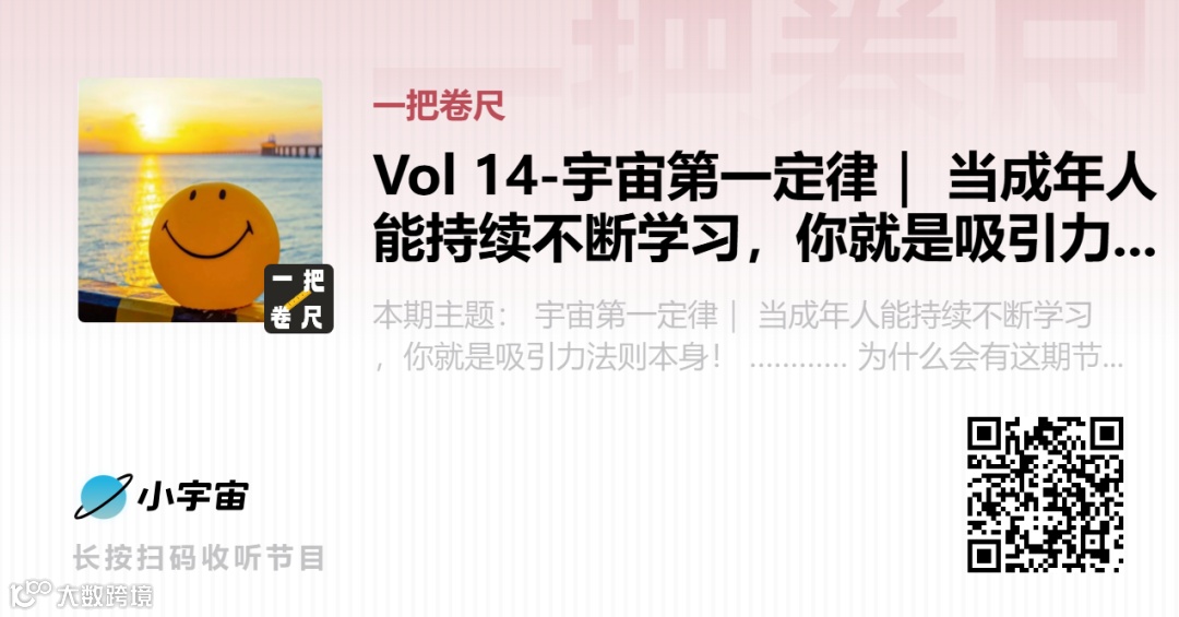 相关播客:《Vol 14-宇宙第一定律| 当成年人能持续不断学习,你就是吸引力法则本身!》
