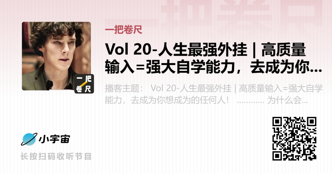 相关播客:《Vol 20-人生最强外挂 | 高质量输入=强大自学能力,去成为你想成为的任何人!》