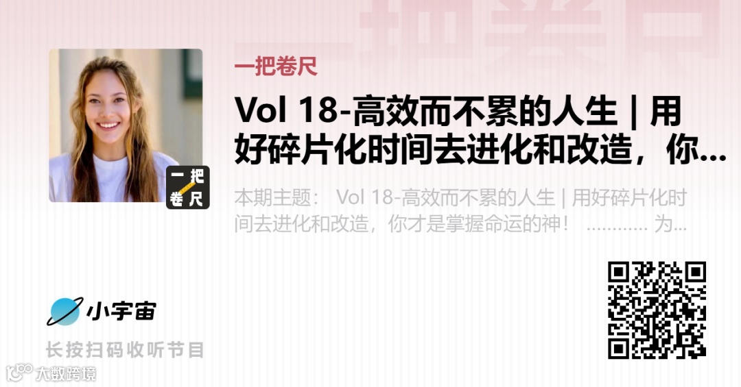 相关播客:《Vol 18-高效而不累的人生 | 用好碎片化时间去进化和改造,你才是掌握命运的神!》
