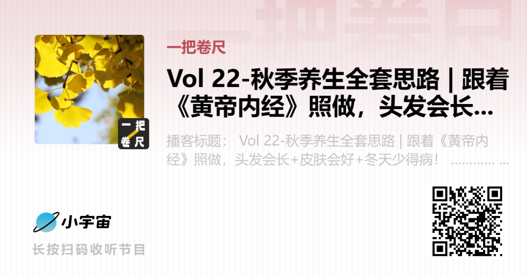 相关播客:《Vol 22-秋季养生全套思路 | 跟着《黄帝内经》照做,头发会长+皮肤会好+冬天少得病!》
