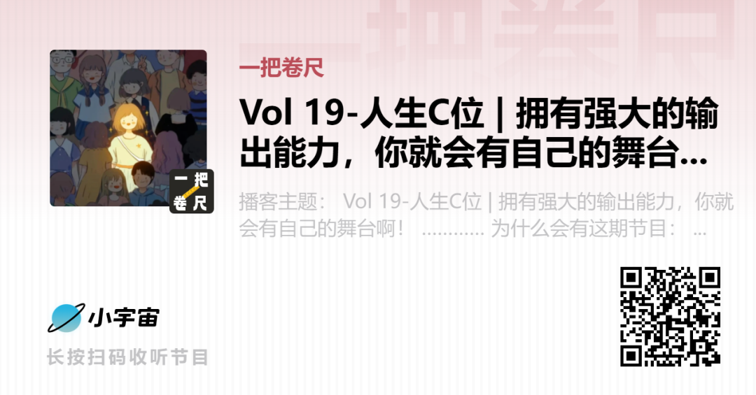 相关播客:《Vol 19-人生C位 | 拥有强大的输出能力,你就会有自己的舞台啊!》