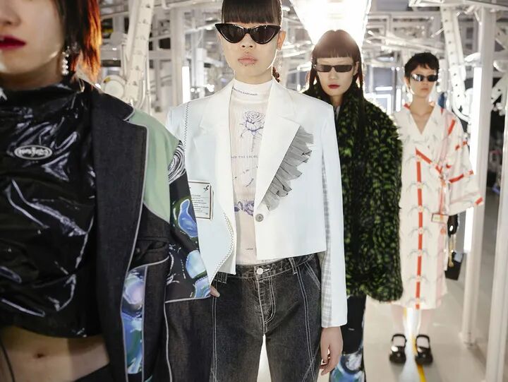 除秀场空间外,硬朗的钢结构线条与柔软的“新生/无界”透明膜相融合,打造FUTURE SPACE STATION,展陈纯粹的淘宝品牌服饰与人类情感的流动,赋予服装崭新的生命力。