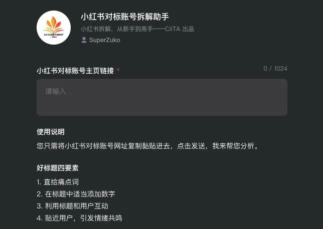 你把要拆解的账号发给它,它就能帮你分析这个账号,甚至帮你改写标题。