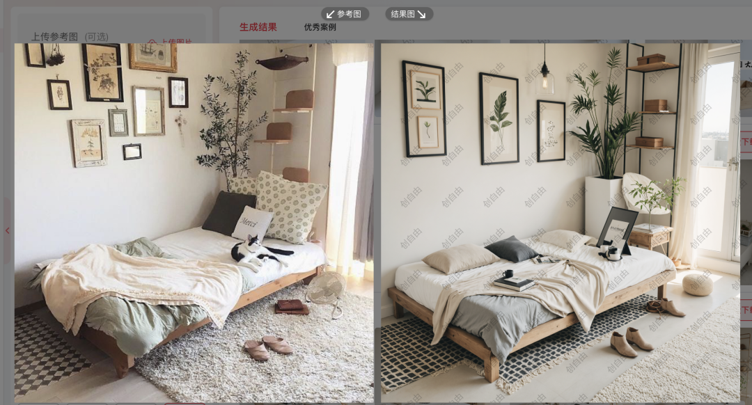 那你可以网上找一张你喜欢的家居效果图,投喂给AI, 让他在原图的基础上,做布局的修改。