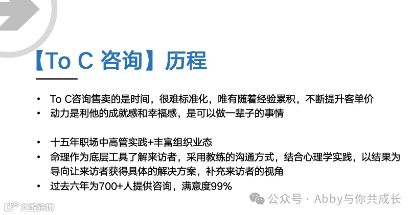 你要通过和现实不断探索的反馈中,反思自己是什么样的人,然后结合环境和商业价值去规划你的变现产品。Abby曼曼一路上的探索也太丰富了:TOB咨询、TOC咨询、创过业、读过AI领域的研究生、做命理和占星咨询、做理财博主……把自己的人生活出了一个缤纷多彩的万花筒,好酷!