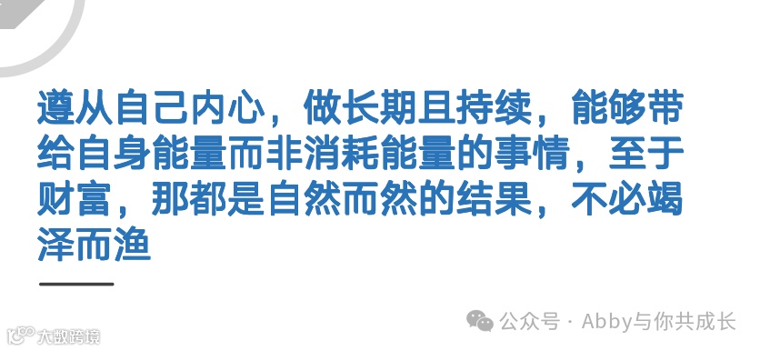 然而并非所有人的性格适合赚快钱,我自身也是从擅长领域、兴趣方向慢慢探索出来的,而非从流量入手。每个人的性格特质不同,我们应该遵从自己的内心,做适合自己的事情。无论是从兴趣出发,还是从流量出发,找到适合自己的方式,长期且持续地去做,财富自然会随之而来。