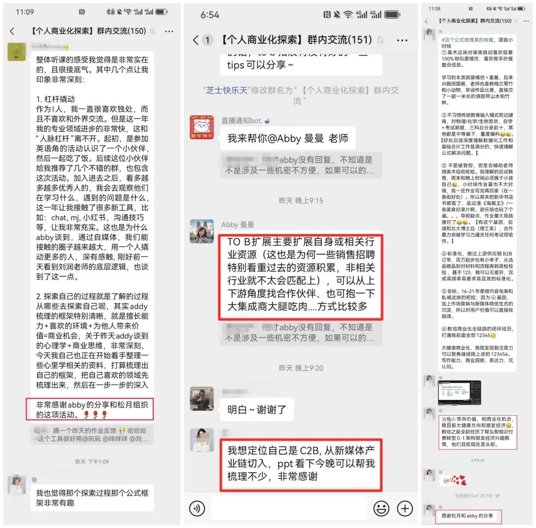 比如今日在松月野生运营的分享就来自于公开表达后链接的相互欣赏。