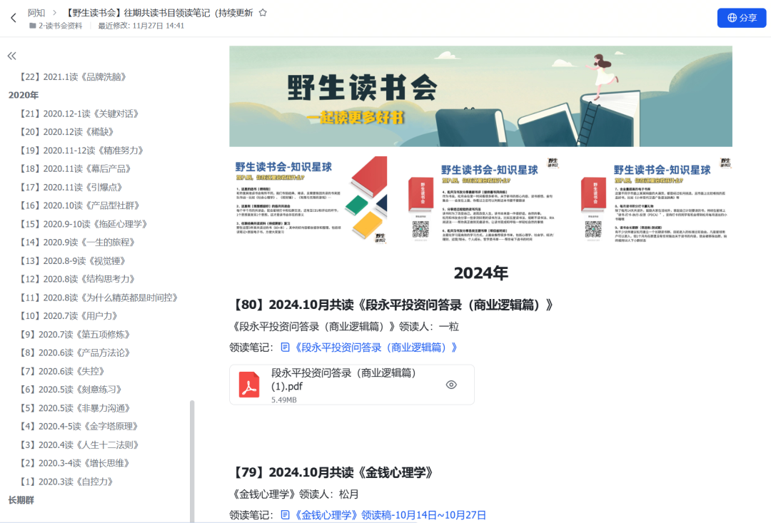 另外,现在加入「野生读书会」知识星球,还可以获得: