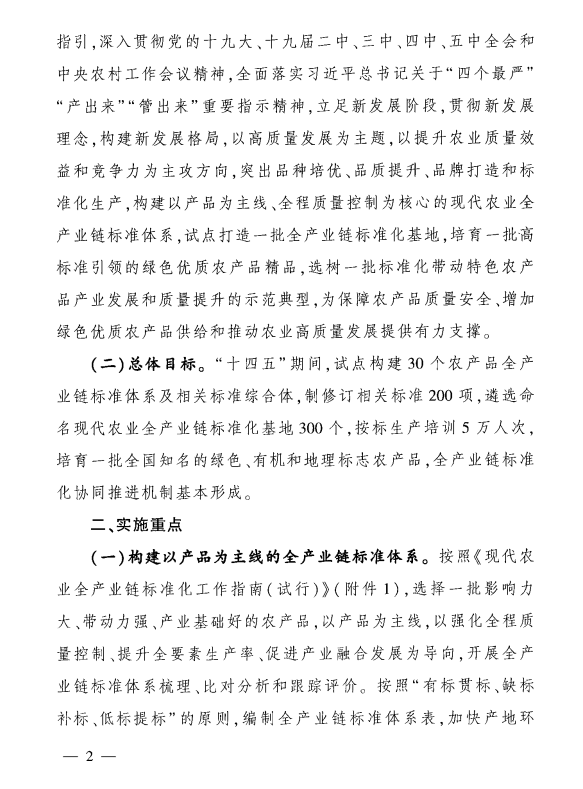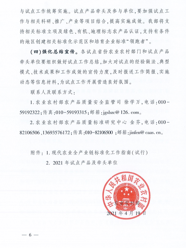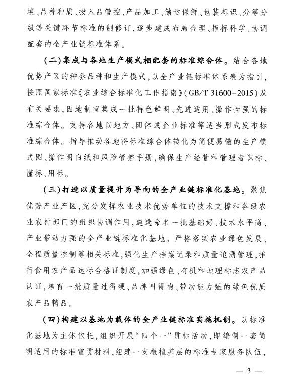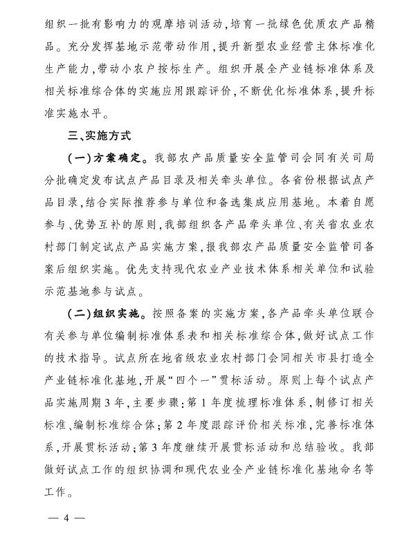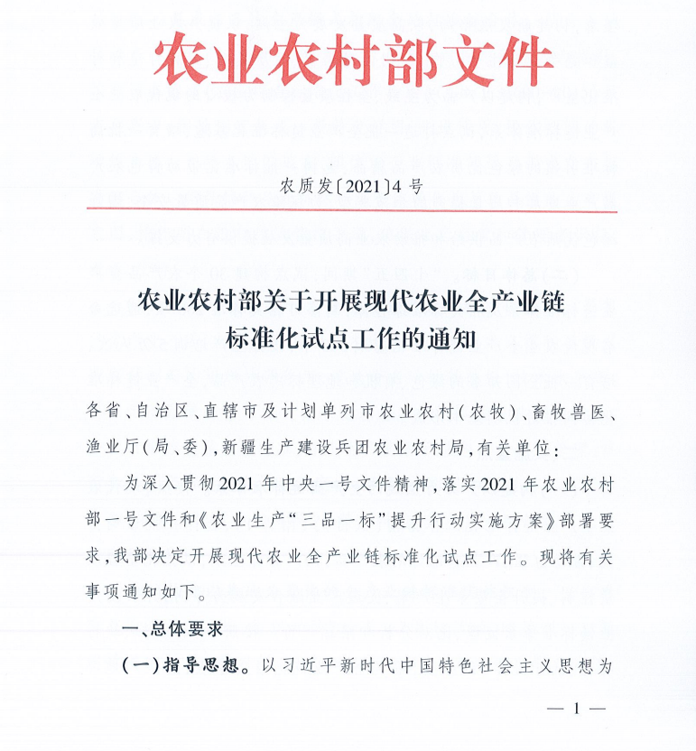 农业农村部关于开展现代农业全产业链标准化试点工作的通知