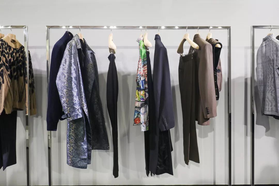 The exhibition space was presented in large checked patterns of corresponding colors to the latest collections. Divided and reorganized, the patterns showcased a distinctive British attitude in which the classical meets the rebellious, and the elegant meets the defiant.