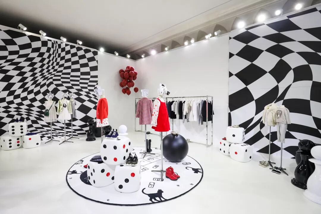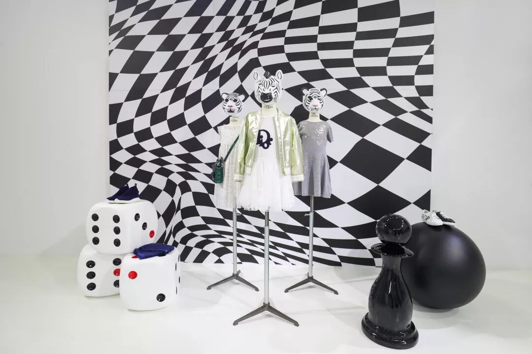 The BABY DIOR Fall-Winter 2019 Collection was inspired by the ball. Designed with festivities in mind, the Creative Director CORDELIA DE CASTELLANE created clothing with comfortable fit and ornate details. The playful interior design is in perfect harmony with the clothing, allowing the guests to fall into a dream-like fairy tale world.