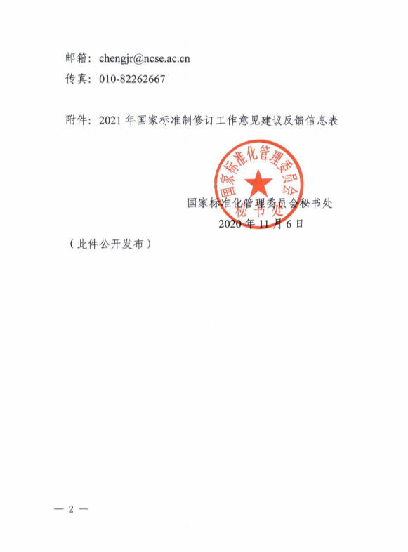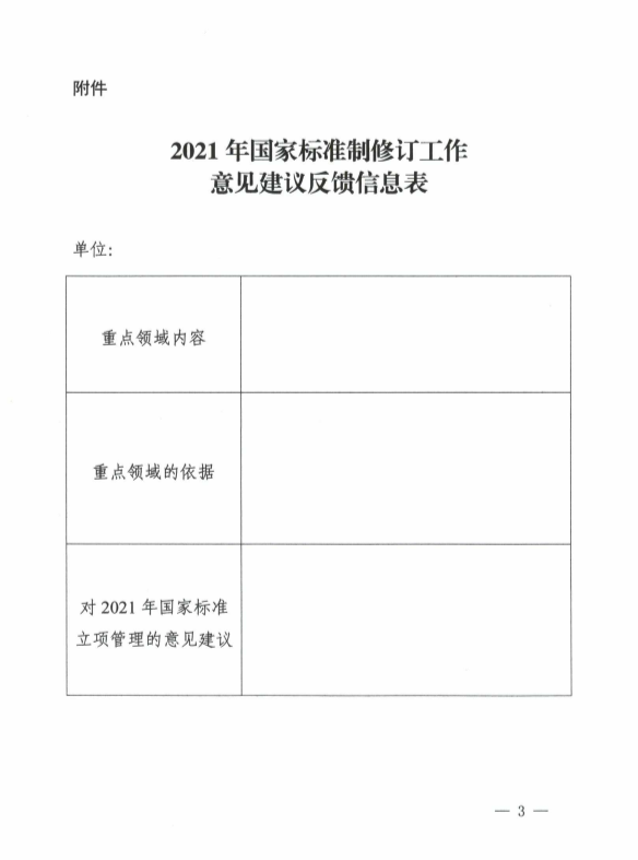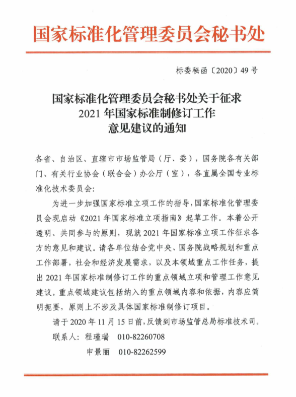 国家标准化管理委员会秘书处关于征求2021年国家标准制修订工作意见建议的通知
