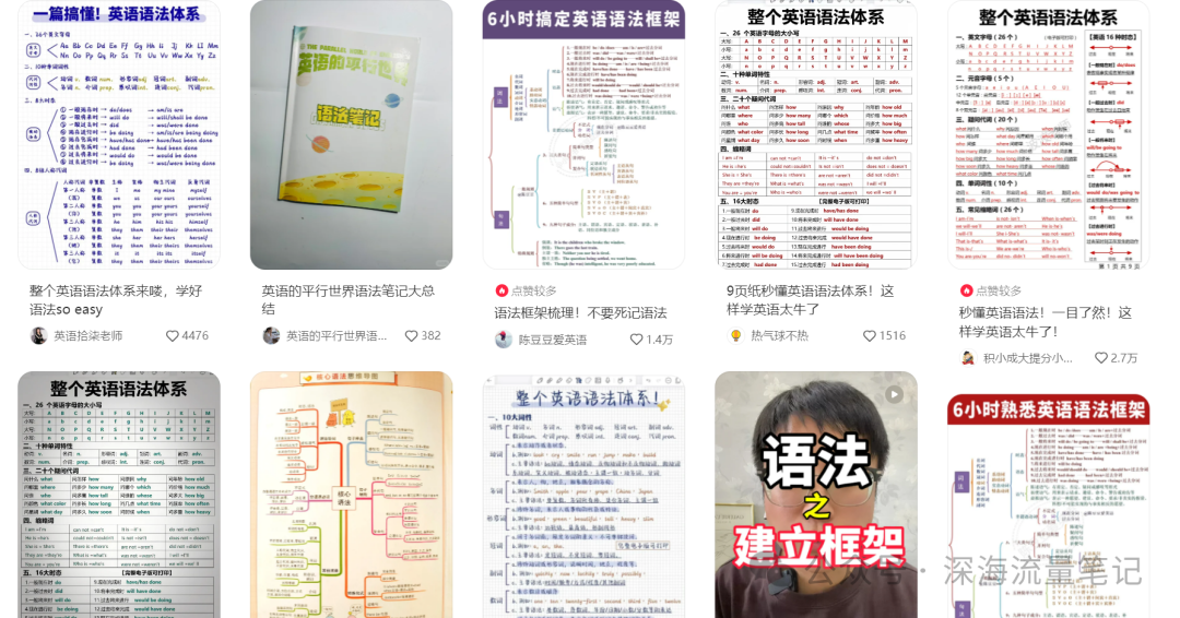 随手举个例子,【资料粉案例】英语赛道的波波老师,仔细看英语语法体系的内容,这样的案例还非常非常多。