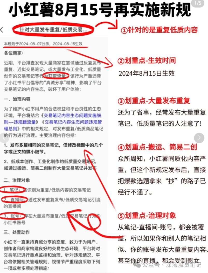 小红书8月初发布的社区公告,就是严打矩阵化生产低质内容