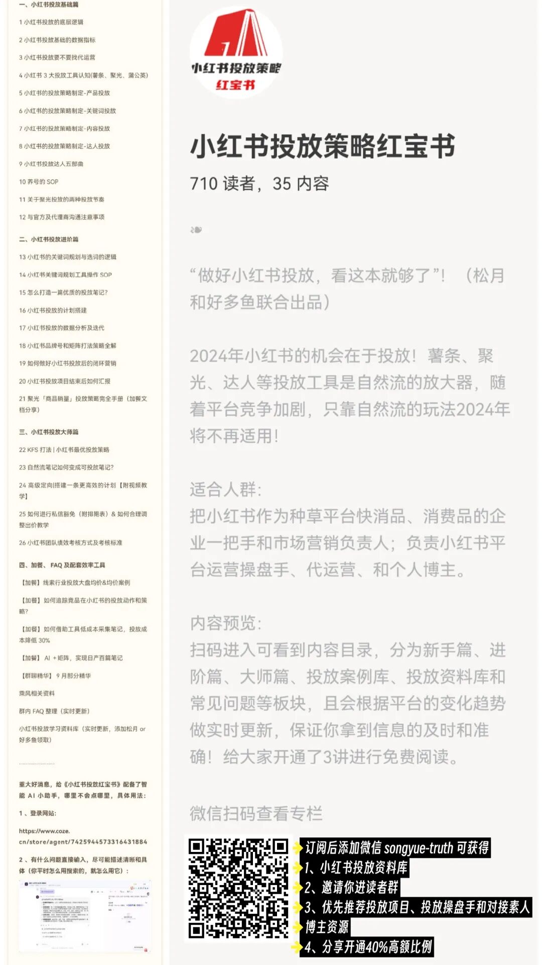 最后一张目录图,让你了解这本专栏的主要内容和交付,扫码即可领取8.5折优惠券,立减55元,一次订阅,终生可看: