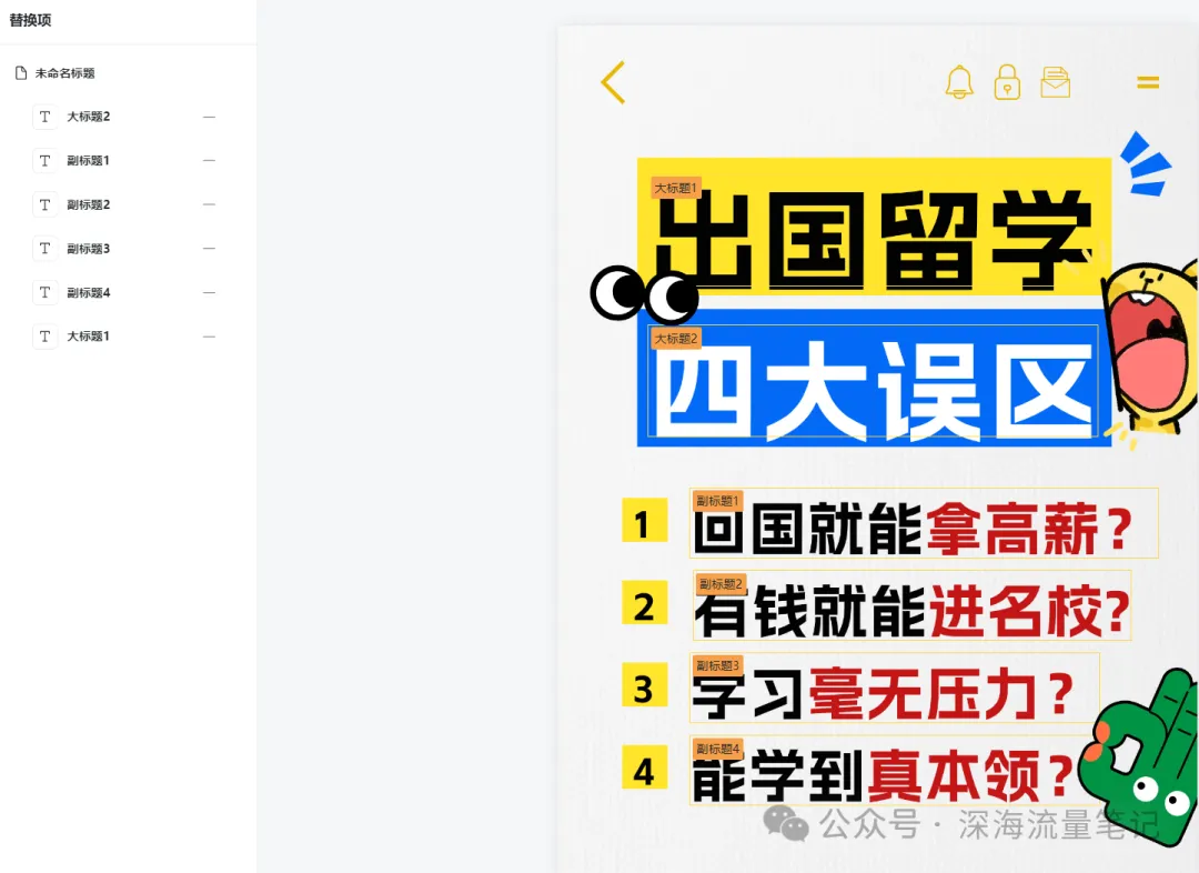 第二步:对文字块进行标题命名,选中需要替换的文字元素块,编辑好选择下一步