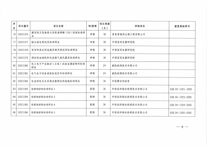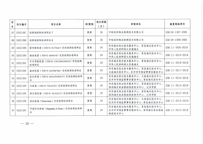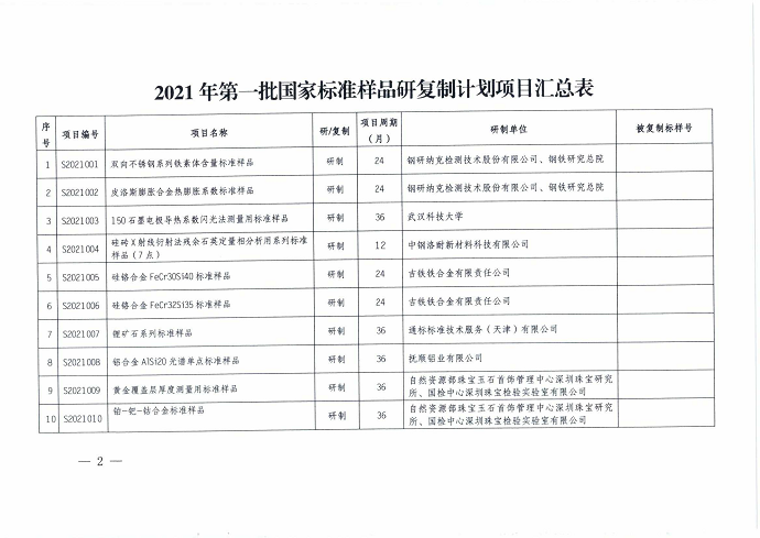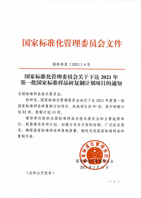 国家标准化管理委员会关于下达2021年第一批国家标准样品研复制计划项目的通知