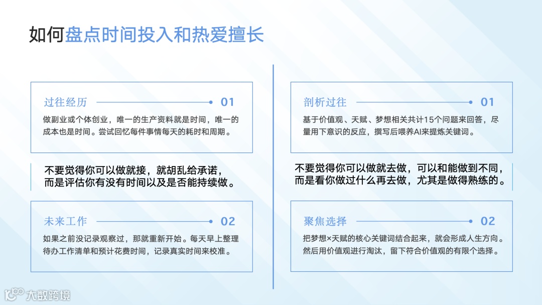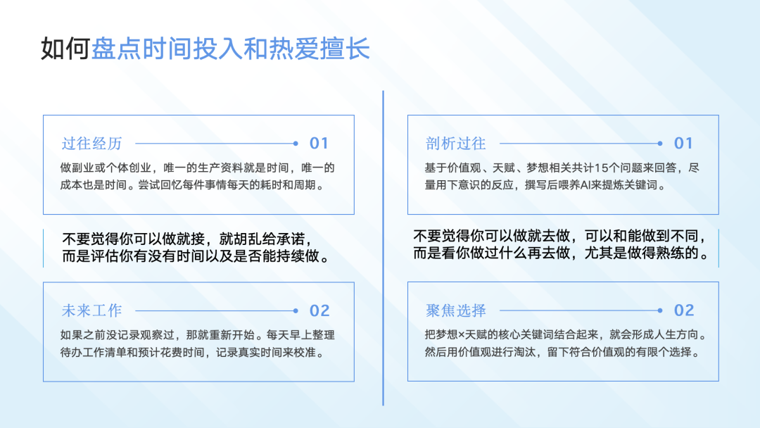 盘点个人技能的关键在于未来可以将能力转化为可交付的产品或服务。