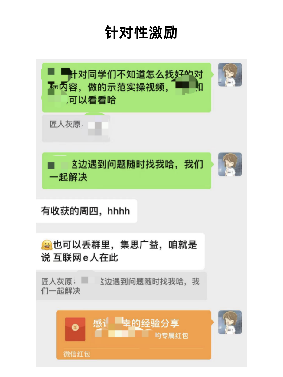 其中转化周期内的承接话术,从外部获客的标准动作整理成工作流,分享给其他同事,后端的履约跟进客户的阶段也有一定的经验,在后续的工作中,聚焦在知识付费行业,或许是比较好的机会。