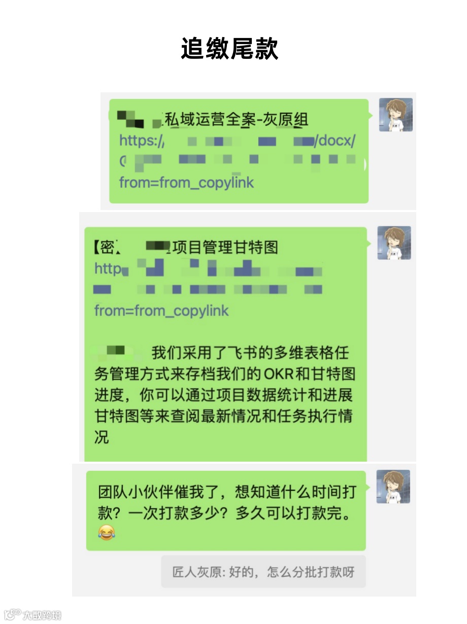 项目结束时,进行结项汇报,展示最终成果和学习点。此时,追缴尾款成为重要议题。