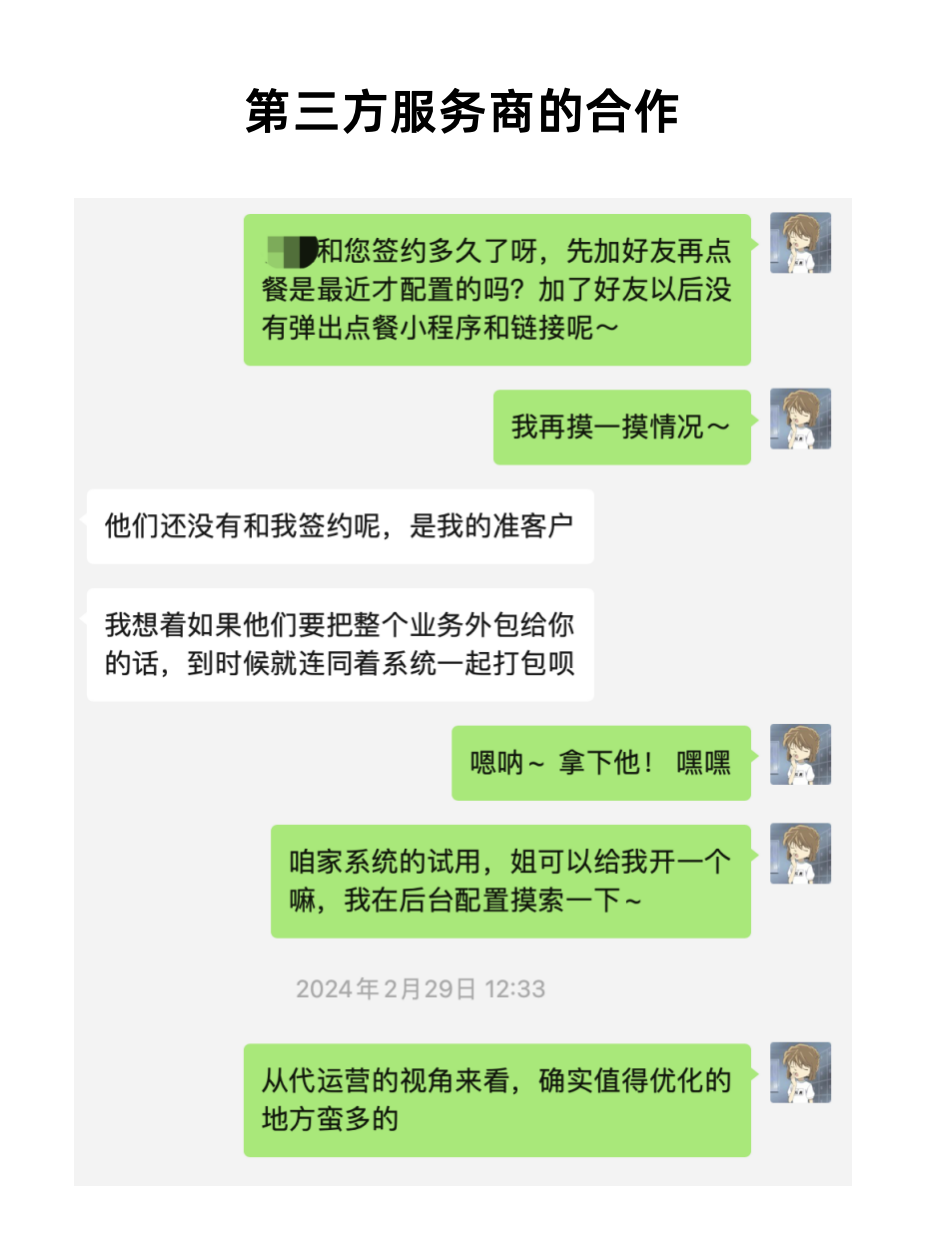 与第三方服务工具服务商建立联系,可以发现互补的合作机会。例如,私域运营工具的服务商可能需要外部的代运营服务来满足客户需求。在这种情况下,与服务商建立良好关系,可以成为互补合作的桥梁。
