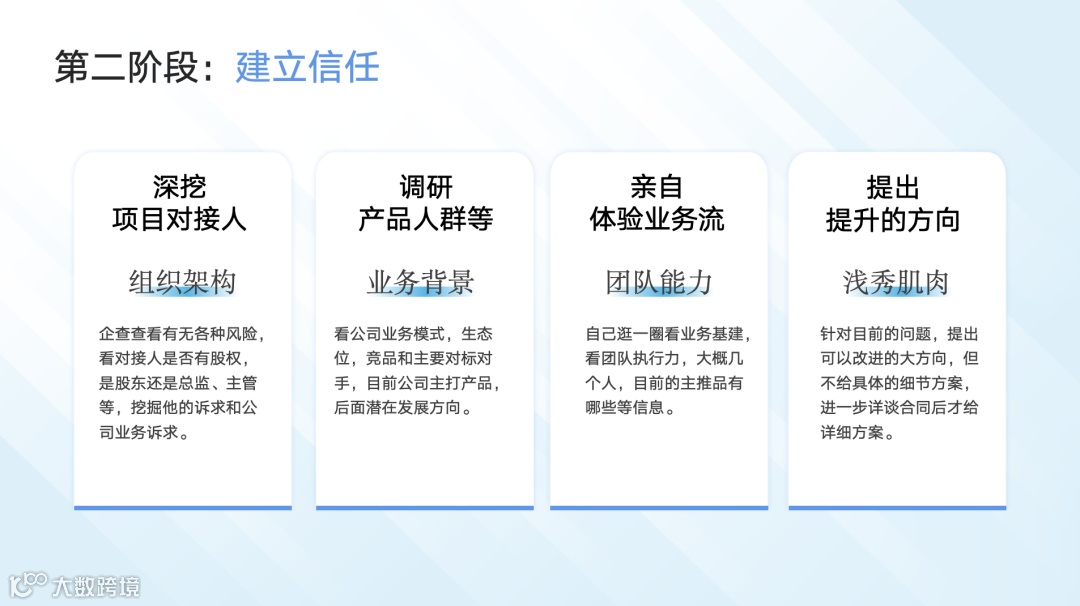 建立信任是任何合作关系中的基石,也是推进商务沟通和合作的前提。