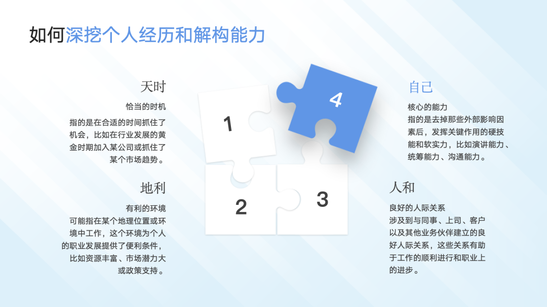 首先,需要深入挖掘个人经历,尤其是职场人士可以利用3至5年的工作经验来确定自己的优势。