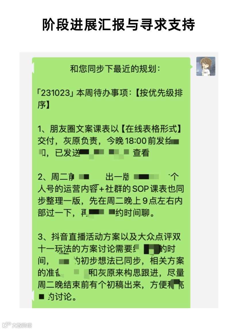 如果还不清楚做每件事情大概需要的时间,可以每天早上盘点一天的待办项加上预估投入的时间以及记录真实用时,不断校准就可以慢慢精确知道具体用时,将来分配任务和工时也可以更加准确,也知道什么时候介入干预比较好。