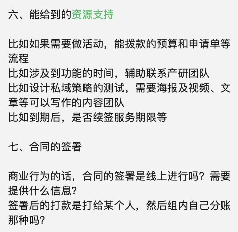 这包括不同合作周期的计划和预算,以及预期的资源配置和落地计划的差异。