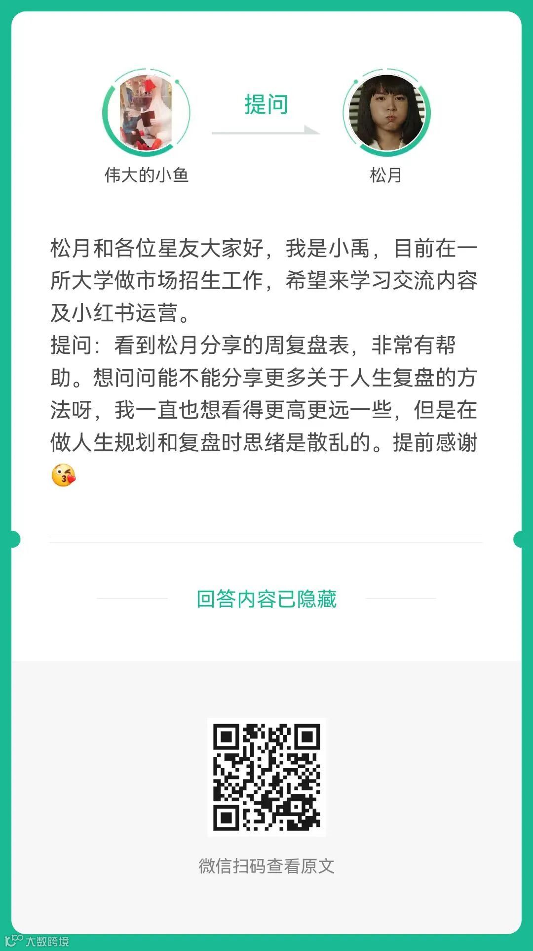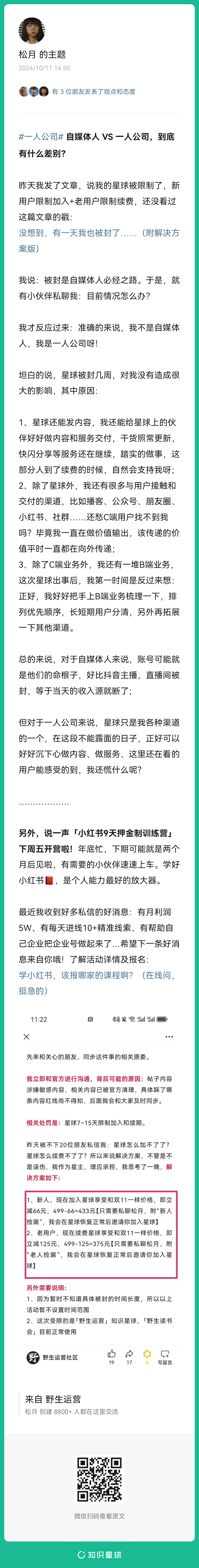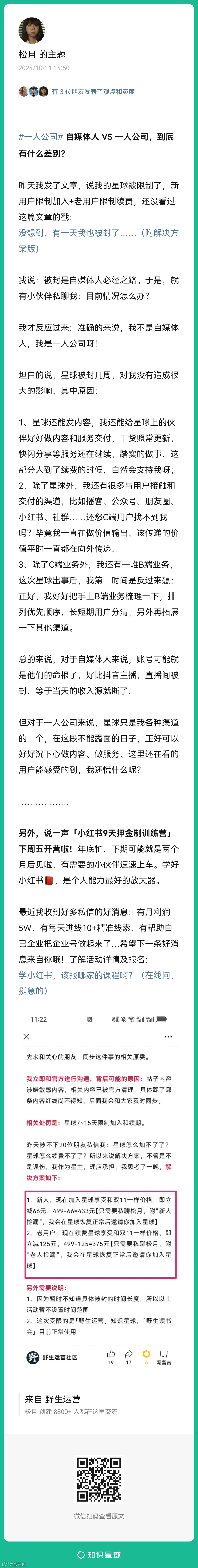 4、提问:目前在纠结一个事,要不要离开这家公司,选择跟你一样【一人公司】?(扫码查看全文)