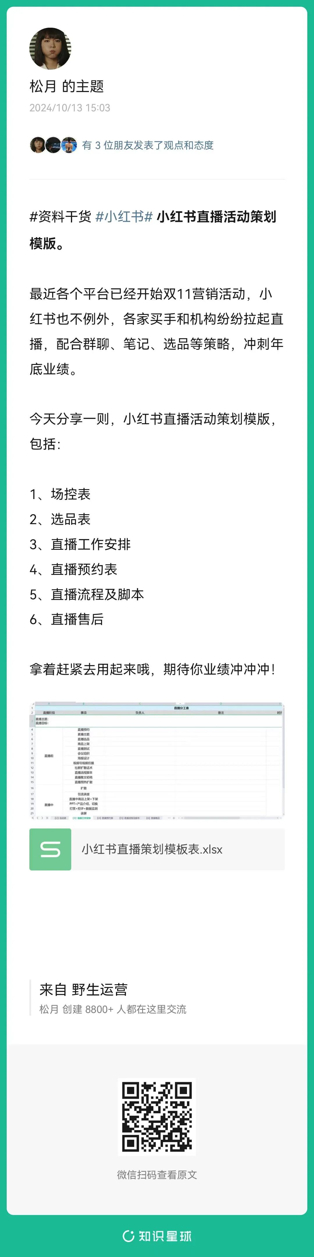 9、松月:小红书直播活动策划模版
