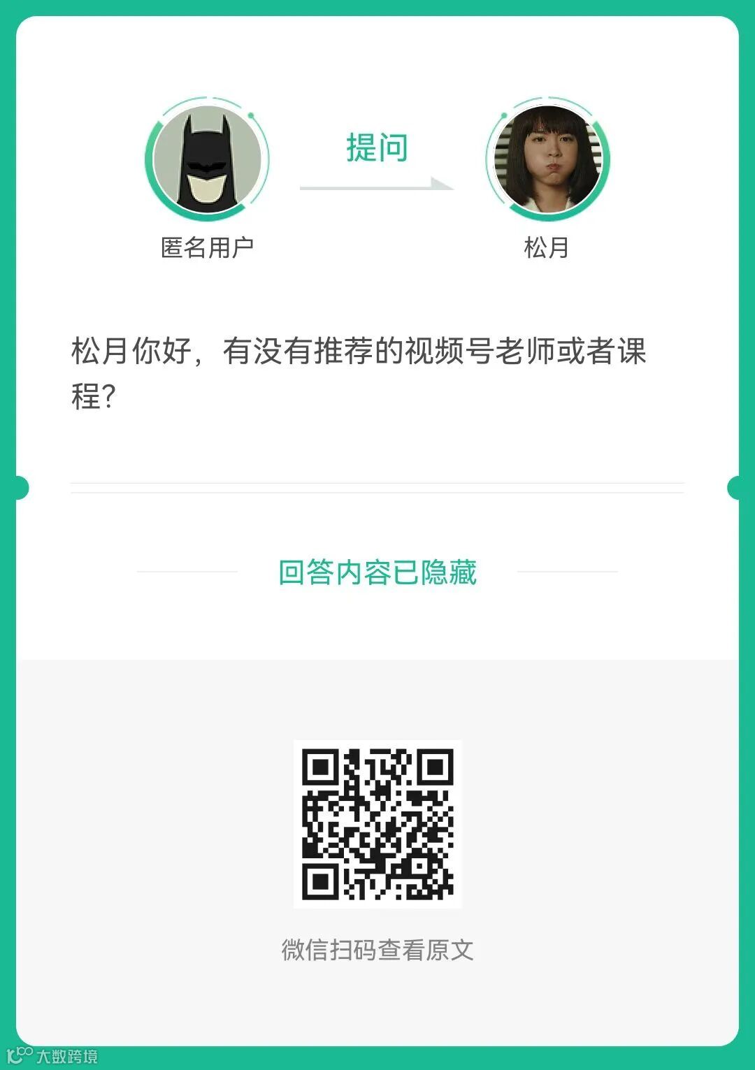 7、提问:有没有推荐的视频号老师或者课程?(扫码查看全文)
