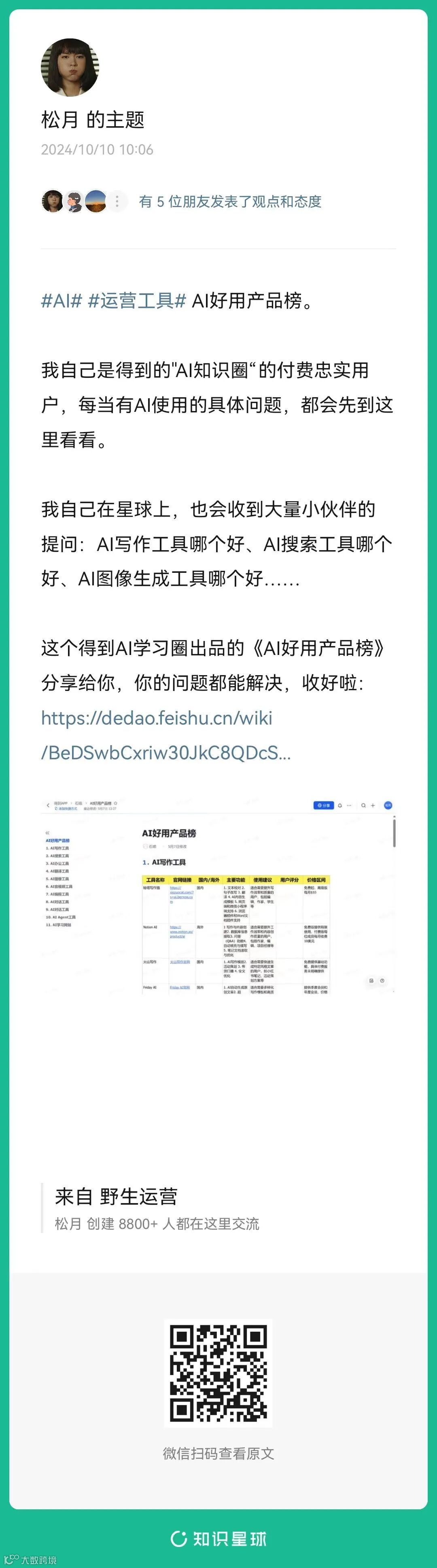 3、松月:AI好用产品榜?(扫码查看全文)