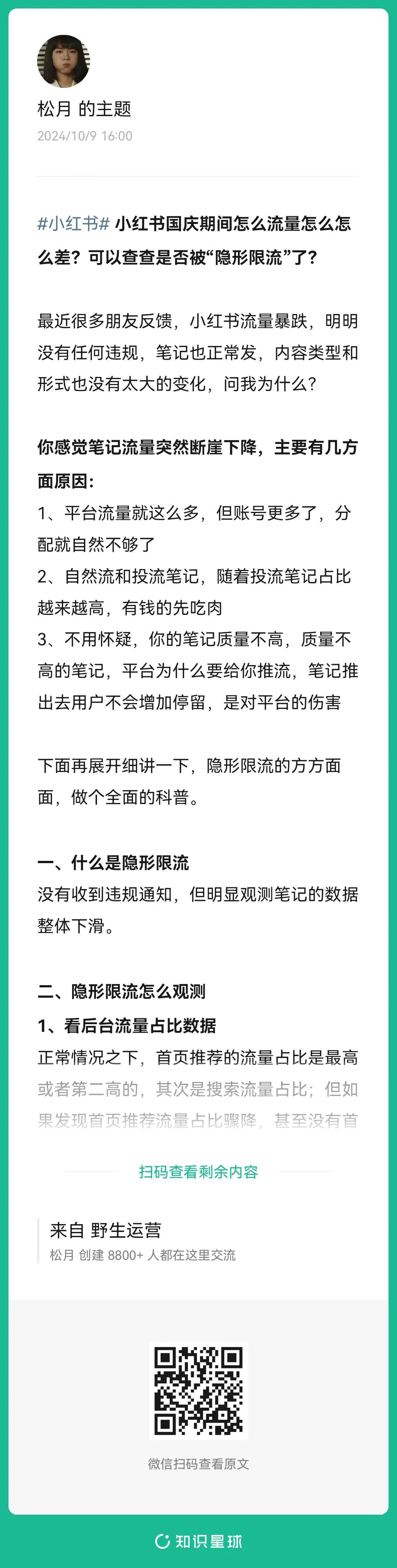 2、松月:什么是小红书的隐形限流?(扫码查看全文)