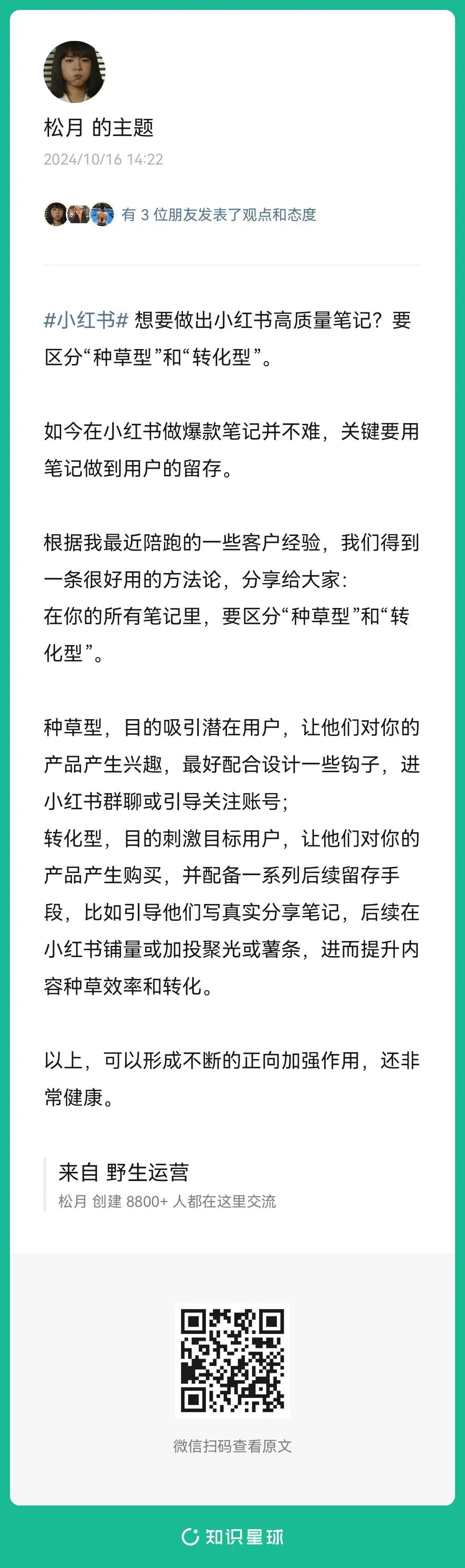 14、松月:想要做出小红书高质量笔记?要区分“种草型”和“转化型”(扫码查看全文)
