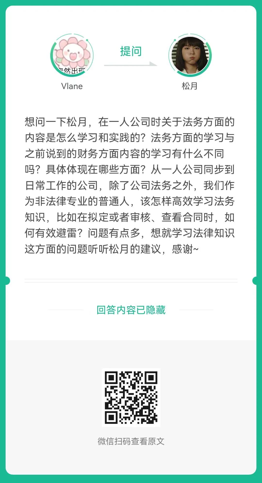 8、提问:在一人公司时关于法务方面的内容是怎么学习和实践的?(扫码查看全文)