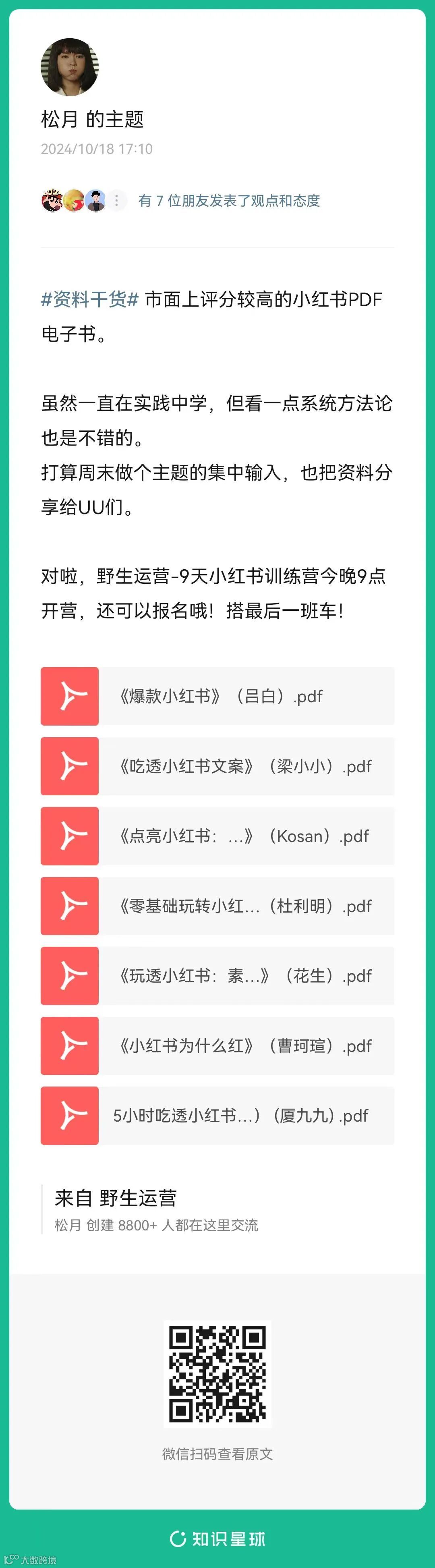 17、松月:市面上评分较高的小红书PDF电子书(扫码查看全文)