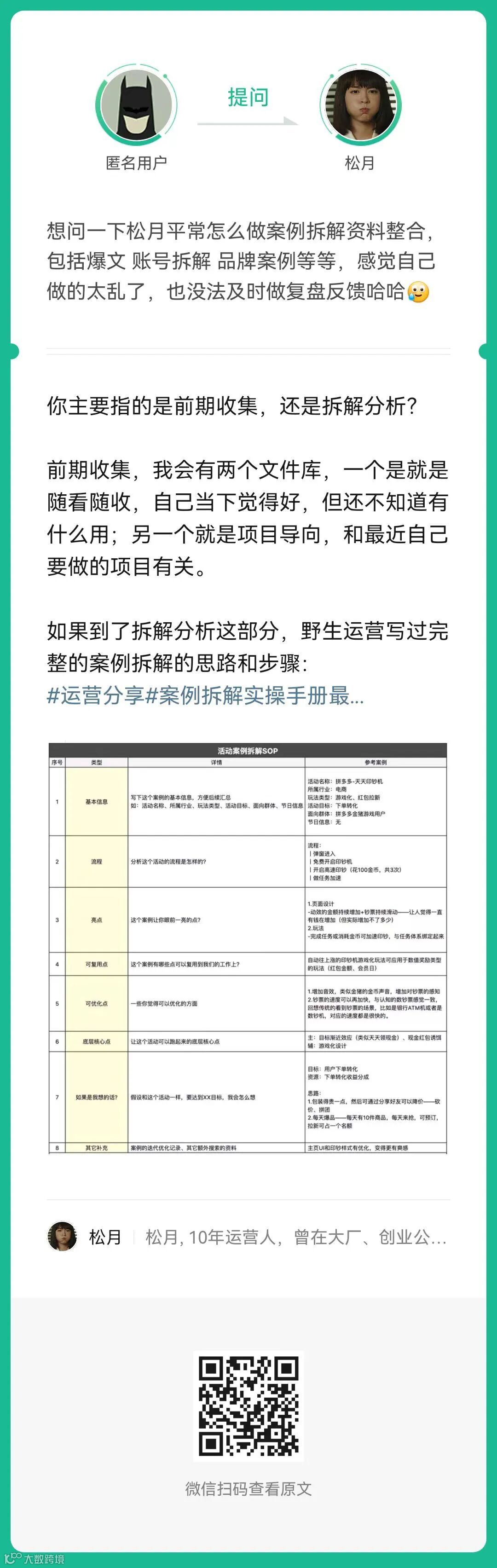 3、提问:想问一下松月平常怎么做案例拆解资料整合?(扫码查看全文)