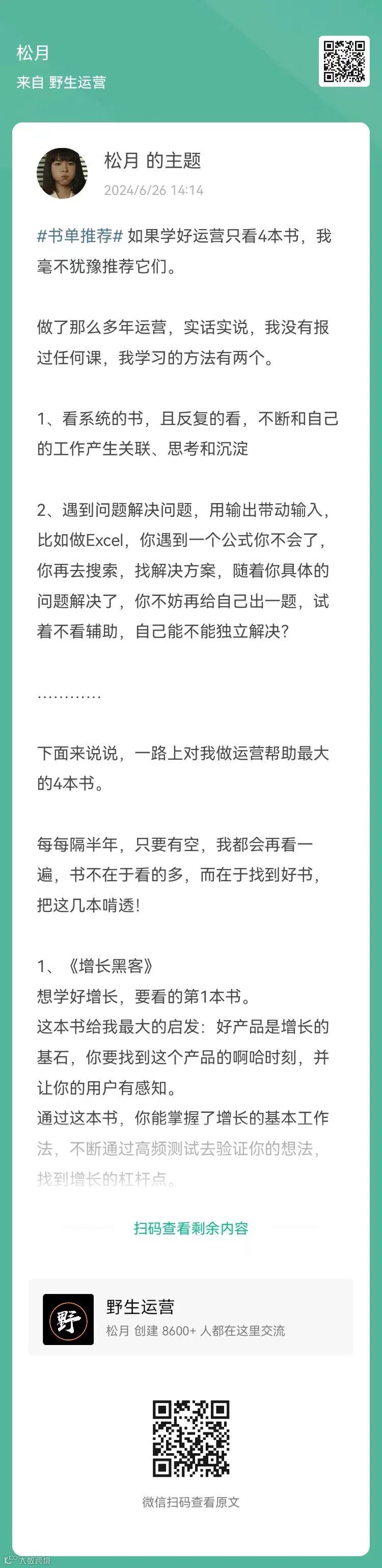 8、松月:如果学好运营只看4本书,我毫不犹豫推荐它们(扫码查看全文)