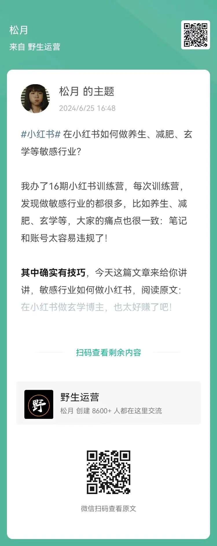 5、松月:在小红书如何做养生、减肥、玄学等敏感行业?(扫码查看全文)
