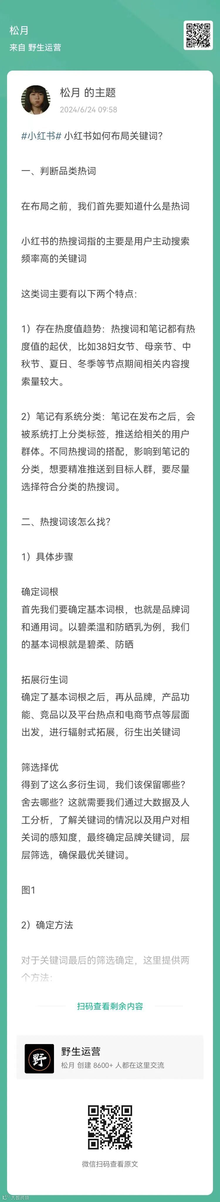 1、松月:小红书如何布局关键词?(扫码查看全文)