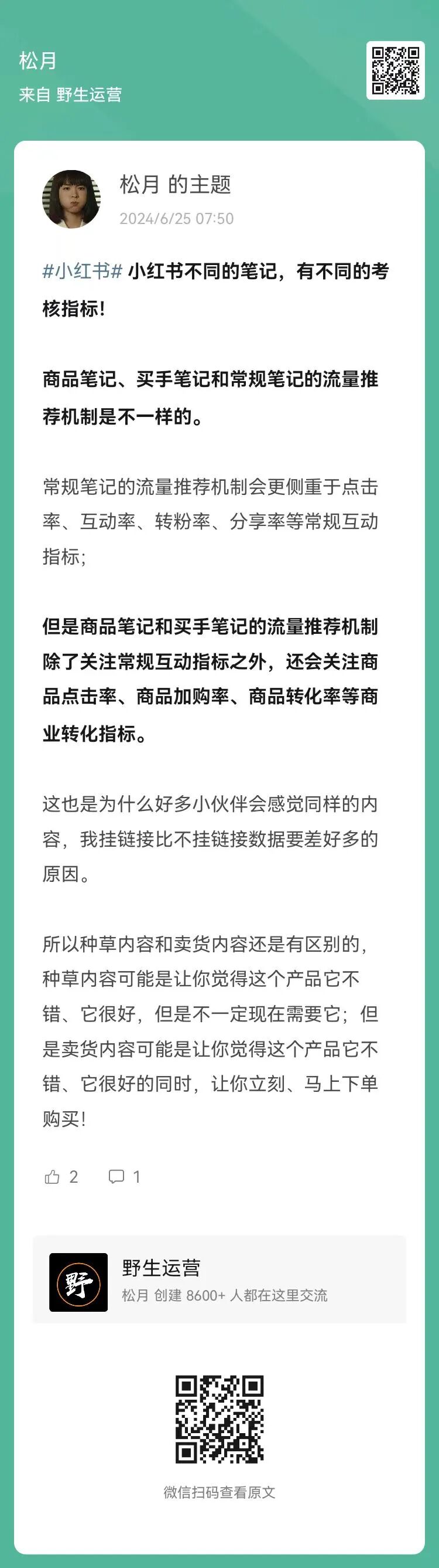 2、松月:小红书不同的笔记,有不同的考核指标(扫码查看全文)