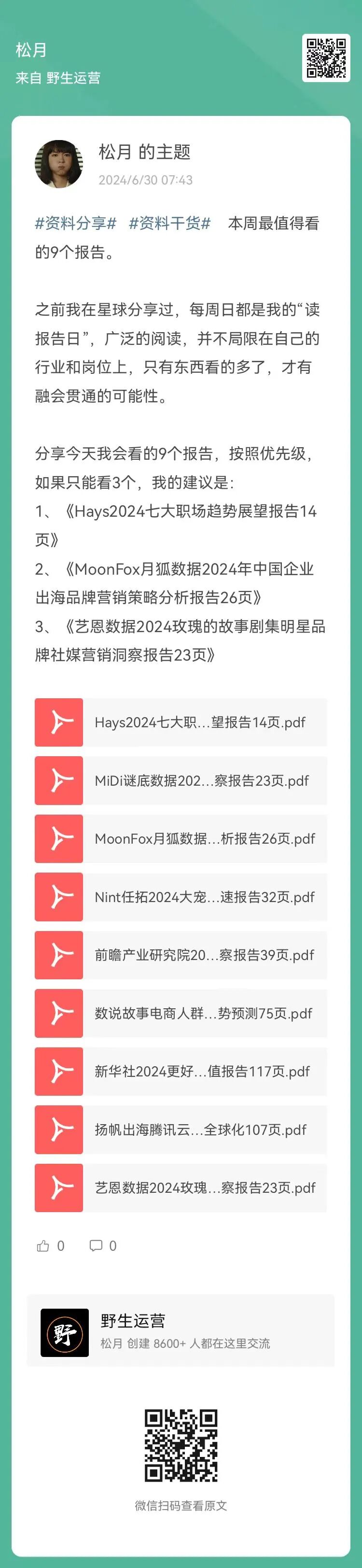 18、松月:本周最值得看的9个报告(扫码查看全文)