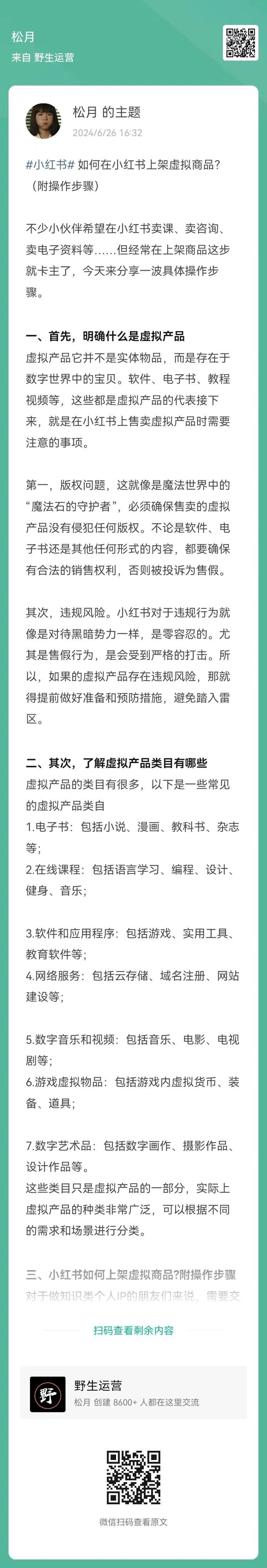 9、松月:如何在小红书上架虚拟商品?(附操作步骤)(扫码查看全文)