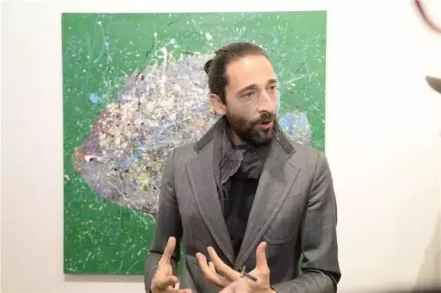 ▲艺术家Adrien Brody与他的作品 "Hooked" 亮相2016 ART021现场