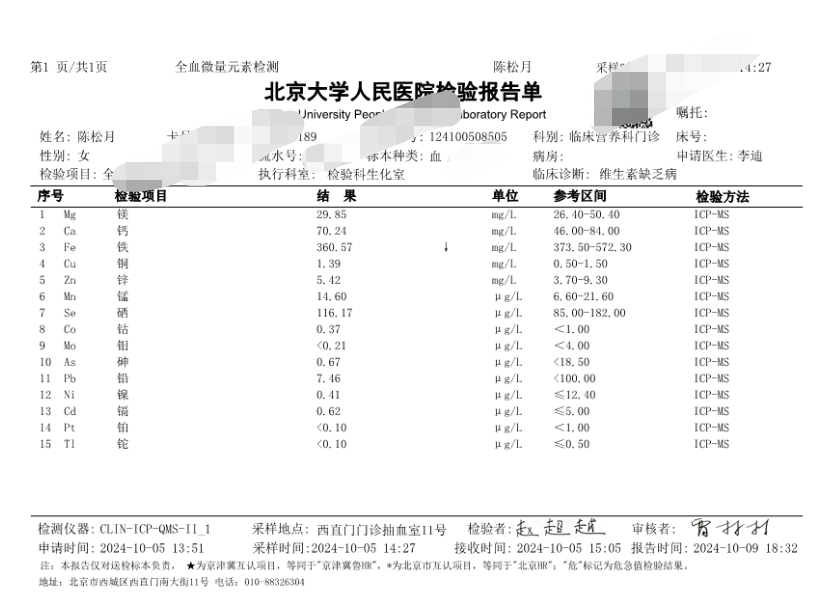 昨天还收到了一个好消息,我收到了“我的体质检测化验单”,除了要补铁外,其他一切正常。