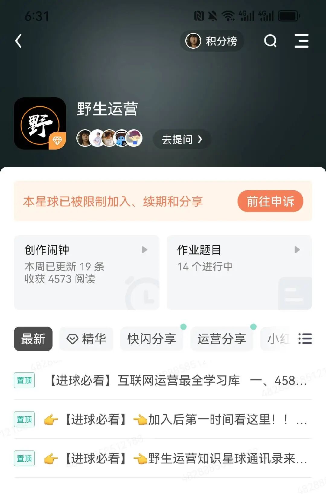 2、这次受限的是「野生运营」知识星球,