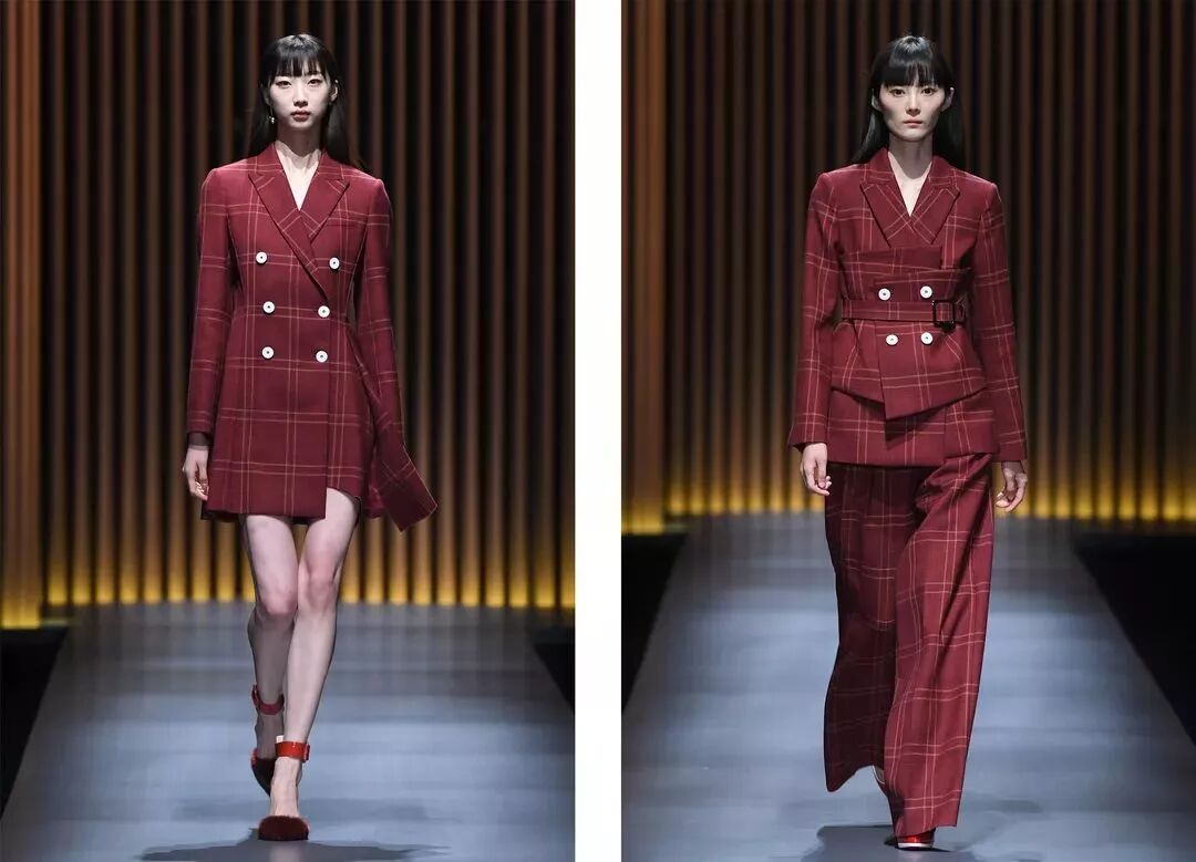 This exquisiteness is conveyed by vivid details—small white collars and cuffs aredotted with white pearls; the dresses that appear to be born out of tough workwear add an interesting element of abstraction; the double-breasted suit is made of velvet to convey femininity. The coexistence of being striking and liberating while being exquisite and soft reflects that a strong background color still can contain lightness.