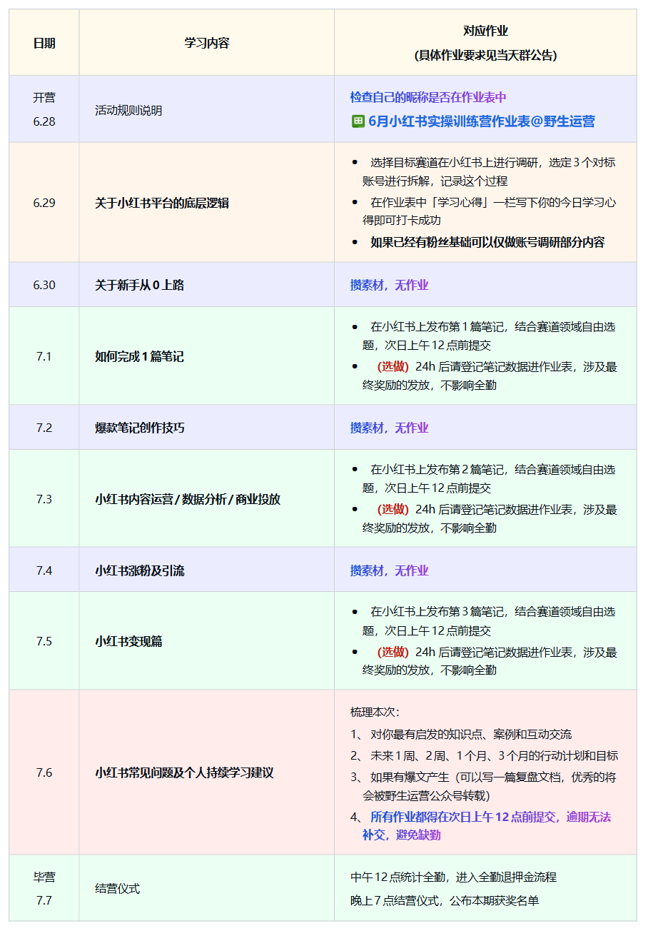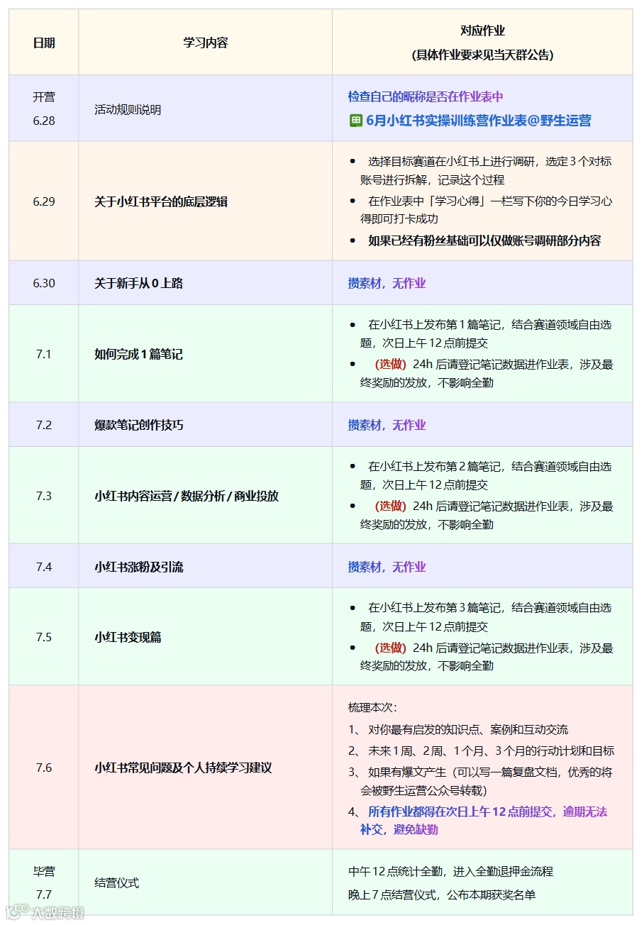 话不多说,6月份的小红书训练营来了,照例是押金制!感兴趣的小伙伴继续看下去吧!